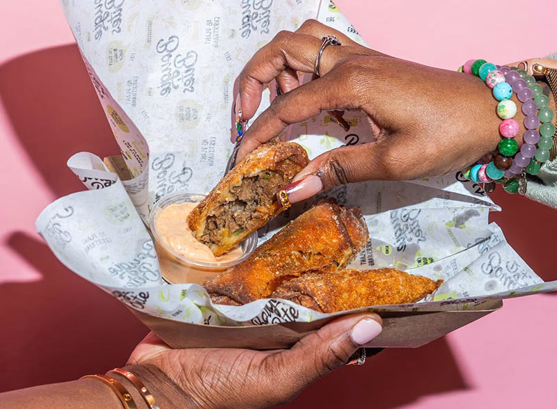 “Our No Cap Eggrolls are our cheeseburger eggrolls. [They] are definitely a crowd favorite! People love the crispy texture and the bold, cheesy, savory flavor.”