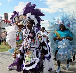Tribes are hierarchical, with roles like Big Chief and Big Queen and suits that take a year to sew. Call‑and‑response chants and handheld percussion bind the parades together as tribes vie for the “prettiest” suit.